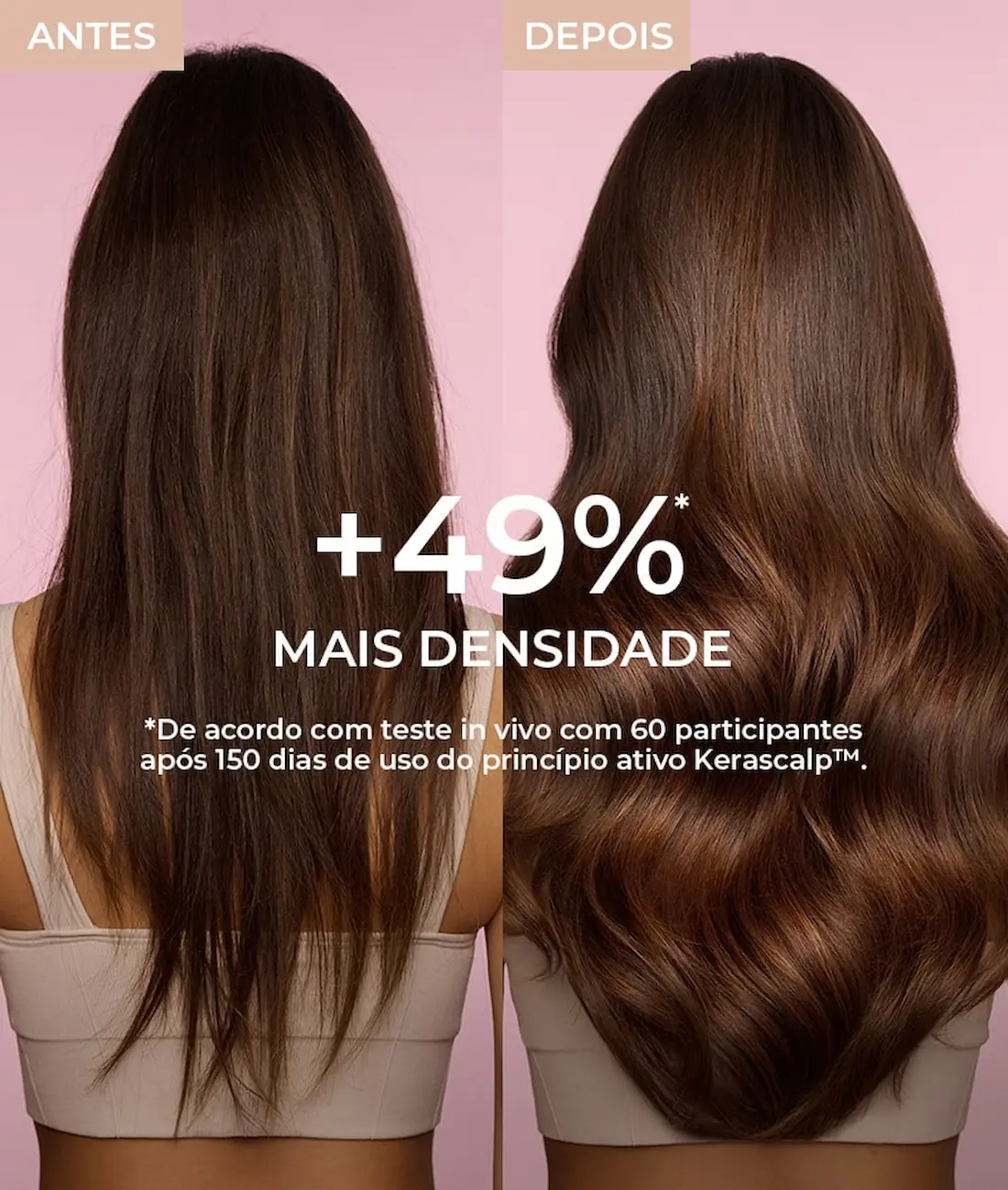 Graças à tecnologia KERASCALP™, atua diretamente no couro cabeludo, fortalecendo os folículos e reduzindo visivelmente os fios grisalhos, promovendo um cabelo com aparência mais jovem e saudável.