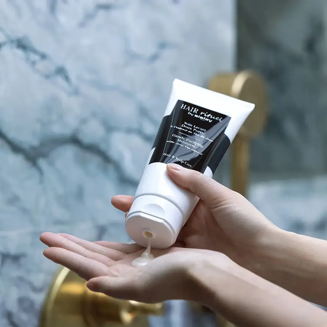 Soin Lavant Doux Pureté da Sisley é um shampoo purificante que limpa suavemente o couro cabeludo, removendo impurezas, oleosidade e resíduos de produtos. Enriquecido com extrato de chá Java, proporciona frescor e leveza, deixando o cabelo mais solto, brilhante e cheio de vitalidade