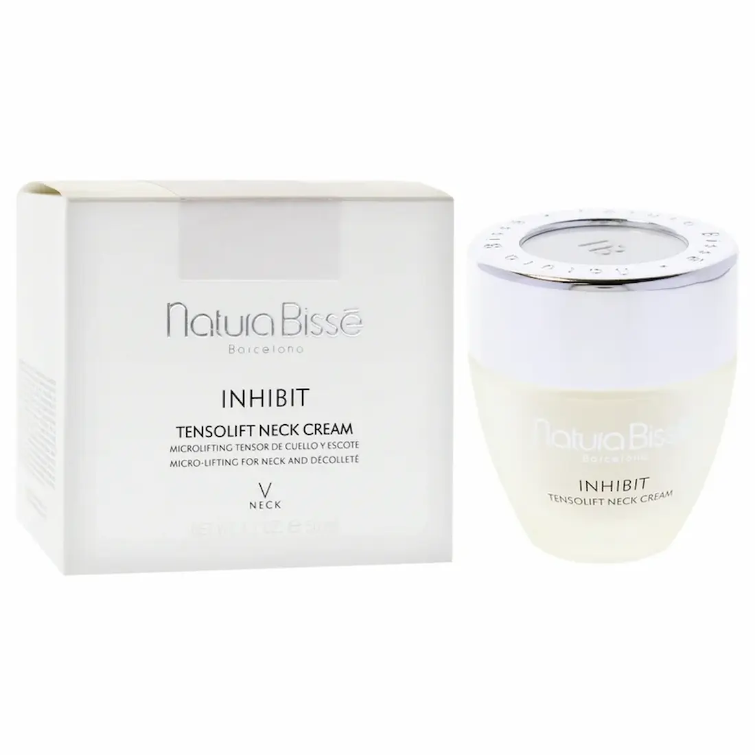 Inhibit Tensolift Neck Cream de Natura Bissé é um creme antirrugas e refirmante concebido especificamente para o pescoço e decote. A sua fórmula contém ingredientes de ponta que hidratam, refirmam e reduzem os sinais de envelhecimento da pele. Inhibit Tensolift Neck Cream suaviza rugas e minimiza manchas escuras, ao mesmo tempo que confere flexibilidade e luminosidade. Rejuvenesça o seu pescoço e decote com este best-seller de Natura Bissé.