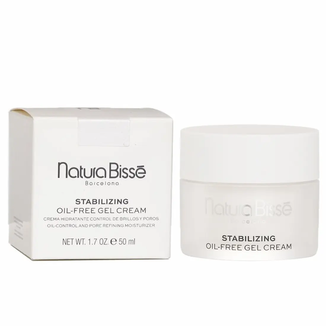 Stabilizing Oil-Free Gel-Cream de Natura Bissé é um cuidado hidratante de rosto para peles oleosas, mistas ou problemáticas. De textura leve, este creme foi desenvolvido para ajudar a regular a oleosidade e brilho da pele, bem como disfarçar poros visíveis e imperfeições. A sua fórmula refrescante, sem óleo e de rápida absorção contém extratos botânicos e probióticos que ajudam a conquistar uma tez de aparência saudável, com menos imperfeições e acabamento mate.