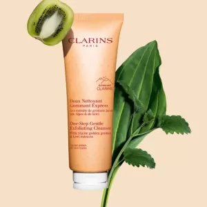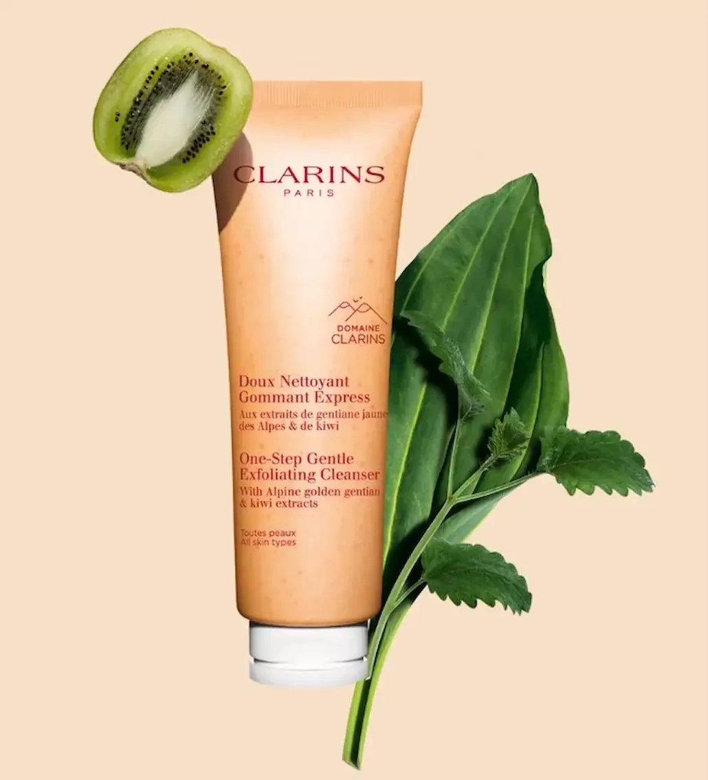 Este gel 3 em 1, com extratos de ervas alpinas do Domaine Clarins, limpa e esfolia eficazmente, mantendo o equilíbrio da pele. Contém saponária bio e kiwi para uma sensação fresca e radiante. Transforma-se em uma espuma leve com microesferas vegetais e apresenta um efeito peeling suave para uma pele limpa e macia. A embalagem foi reformulada para ser mais ecológica e leve.