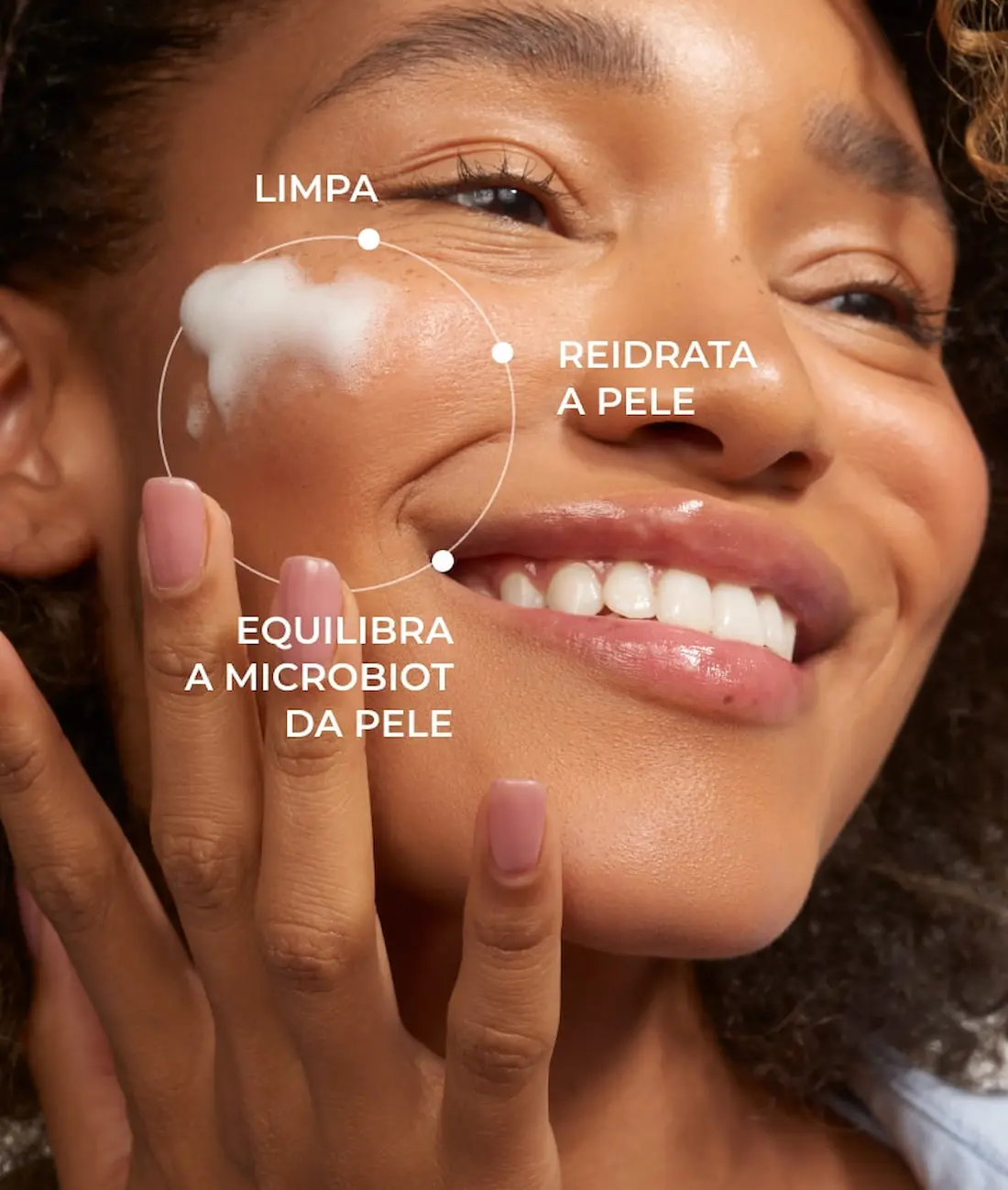 • Hidrata, equilibra a microbiota e reforça a barreira cutânea