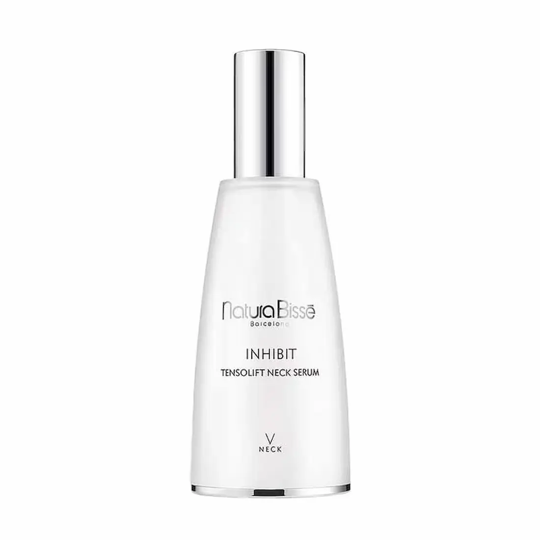 Inhibit Tensolift Neck Serum de Natura Bissé é um sérum de efeito refirmante intensivo para o pescoço e decote. Este sérum ultraconcentrado é formulado com ácido hialurónico e o Complexo Pro-Lift, uma combinação perfeita de ingredientes tensores, preenchedores e refirmantes que atuam para revelar instantaneamente uma pele mais lisa e firme. Este tratamento de lifting intensivo hidrata, confere luminosidade e ajuda a aperfeiçoar o contorno do maxilar, minimizando rugas e flacidez abaixo do queixo. Inhibit Tensolift Neck Serum é o segredo para um pescoço e decote radiantes e visivelmente mais jovens.