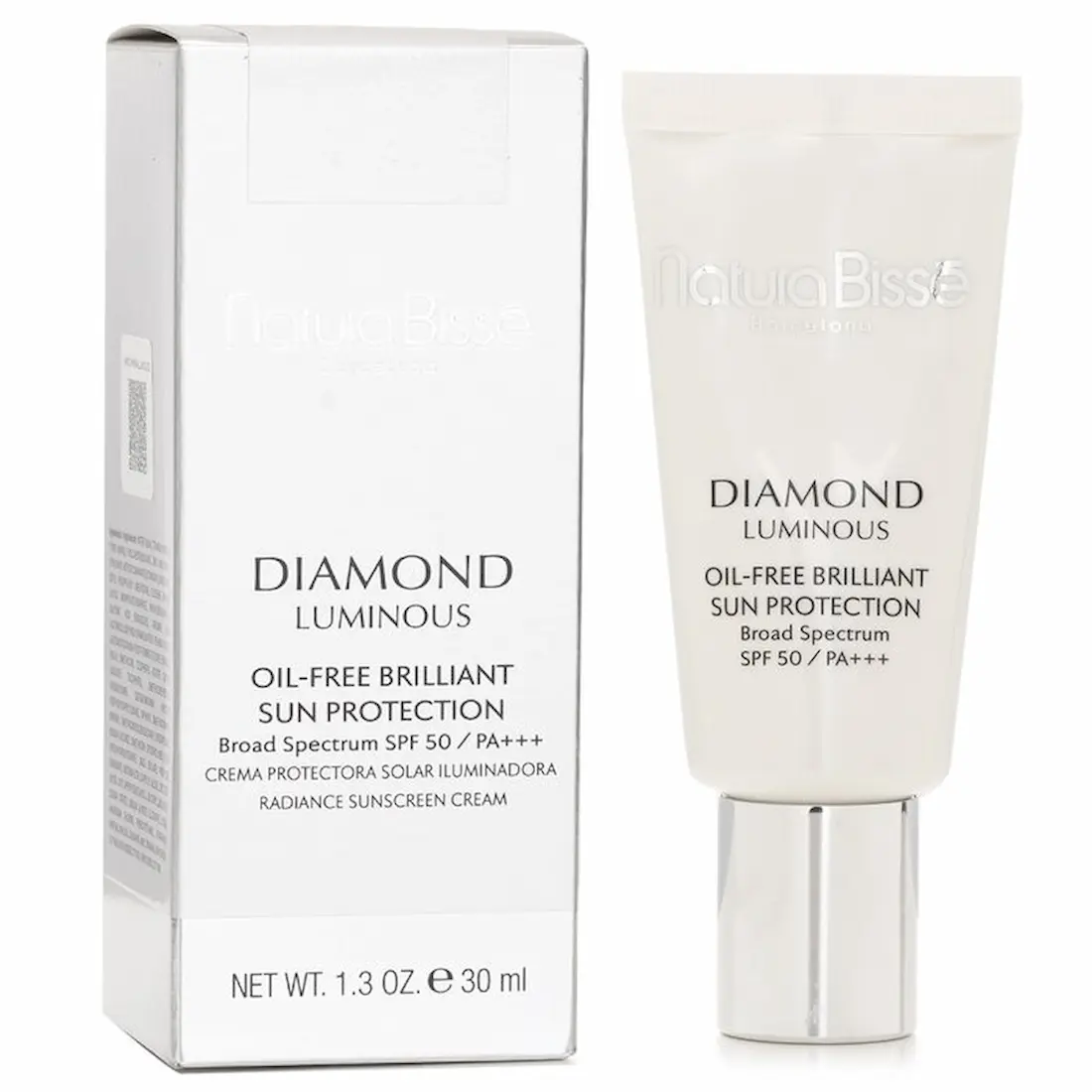 Diamond Luminous Oil-Free Brilliant Sun Protection SPF50 é um protetor solar de rosto com SPF50. Este creme maravilha de Natura Bissé oferece proteção de largo espetro, ação antienvelhecimento e iluminadora e um toque de cor. A sua fórmula inovadora protege contra os raios UV e luz azul, ajuda a combater os sinais de envelhecimento precoce e manchas escuras, proporciona hidratação e uniformiza o tom da pele. Um cuidado de excelência na área da proteção solar.