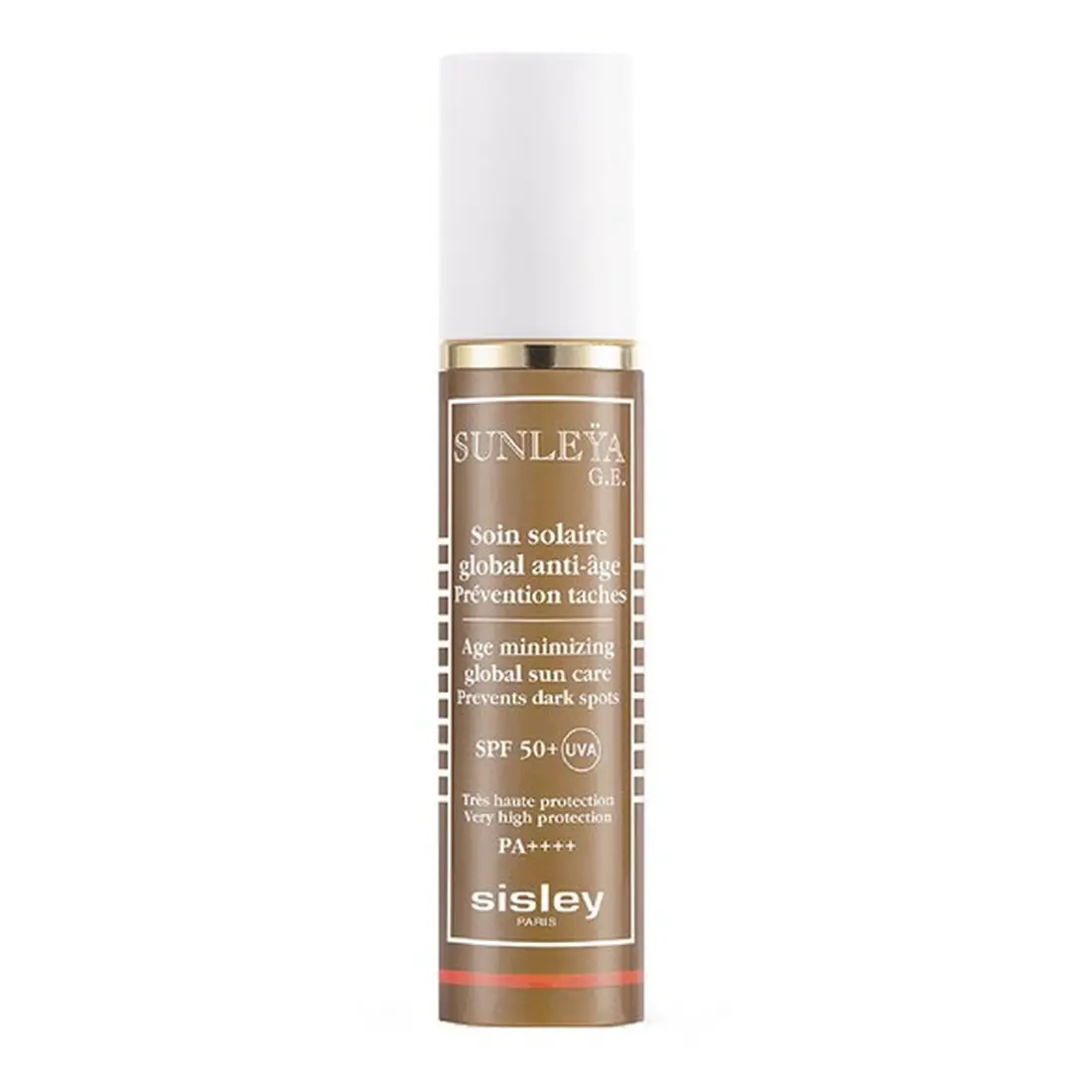 Sunleÿa G.E. SPF 50+ da Sisley é um protetor solar antienvelhecimento que protege a pele contra rugas, manchas, desidratação e flacidez