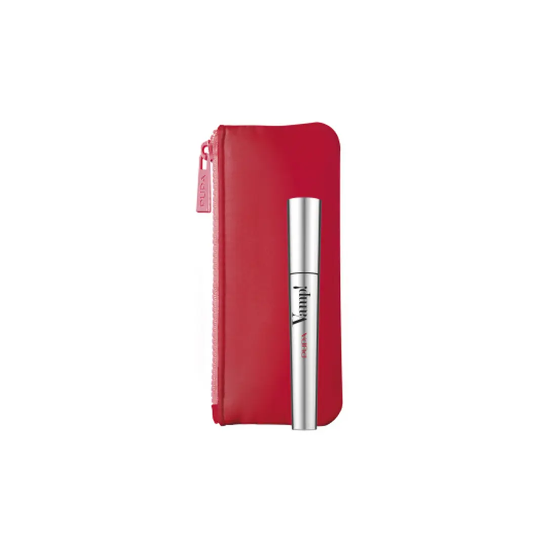 Pupa Set Vamp! Edição limitada para 2024: sucesso de vendas em maquiagem e acessórios em tons vibrantes de vermelho, azul, rosa e verde, com bolsas feitas de poliéster reciclado.