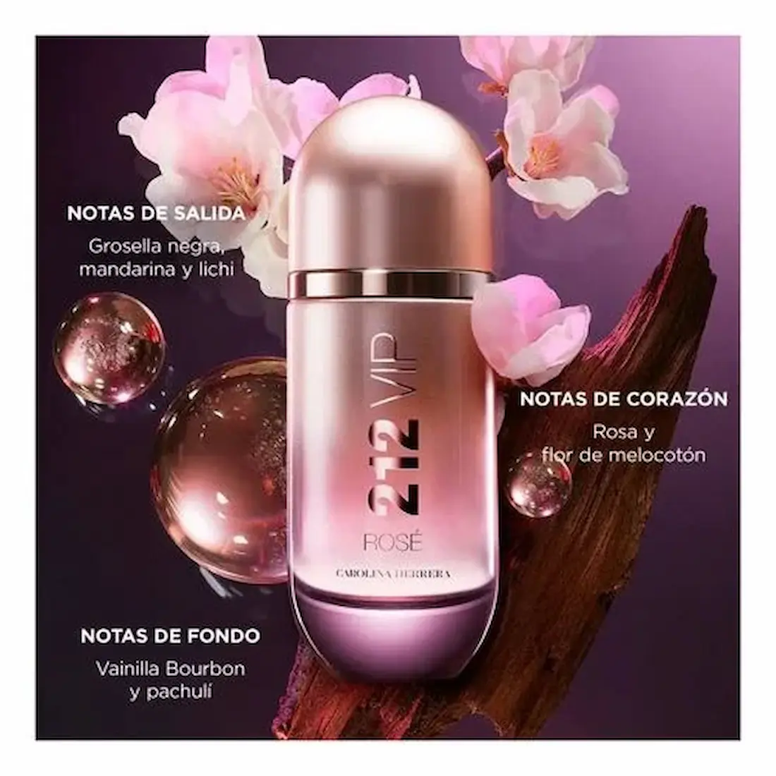 Elixir 212 VIP rosé é uma versão intensa e sedutora do 212 VIP rosé, apresentado em um frasco com degradê brilhante em rosa. Este eau de parfum celebra a autenticidade feminina com uma fragrância refrescante e floral, combinando notas de groselha preta, tangerina, flor de pêssego, baunilha bourbon e patchouli. O frasco glamouroso é um convite à autoexpressão e à liberdade.