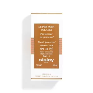 Super Soin Solaire SPF 30 da Sisley é um protetor solar facial que combate o fotoenvelhecimento com filtros UVA e UVB, protegendo a pele do estresse oxidativo. Sua fórmula inclui ativos hidratantes e nutritivos, sendo não oleosa, impermeável e não comedogênica, com uma fragrância suave de óleos de sálvia e manjerona.